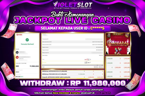 VIOLETSLOT | BUKTI PEMENANG LIVE CASINO BONSAI SPEED BACARRAT A TANGGAL 19 OKTOBER 2025 RP. 8,950,000,. LUNAS